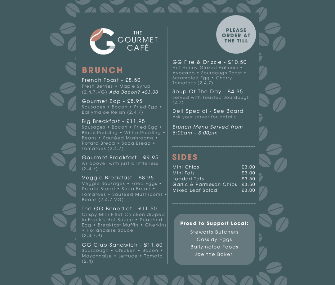 Tucked along Enniskillen’s High Street, Gourmet Grocer is more than a shop — it’s a place to meet, eat, and discover. Our café serves all-day breakfasts, wholesome lunches, and great coffee, while our shelves are filled with artisan Irish produce, premium wines, and chef-quality ingredients for your kitchen at home.